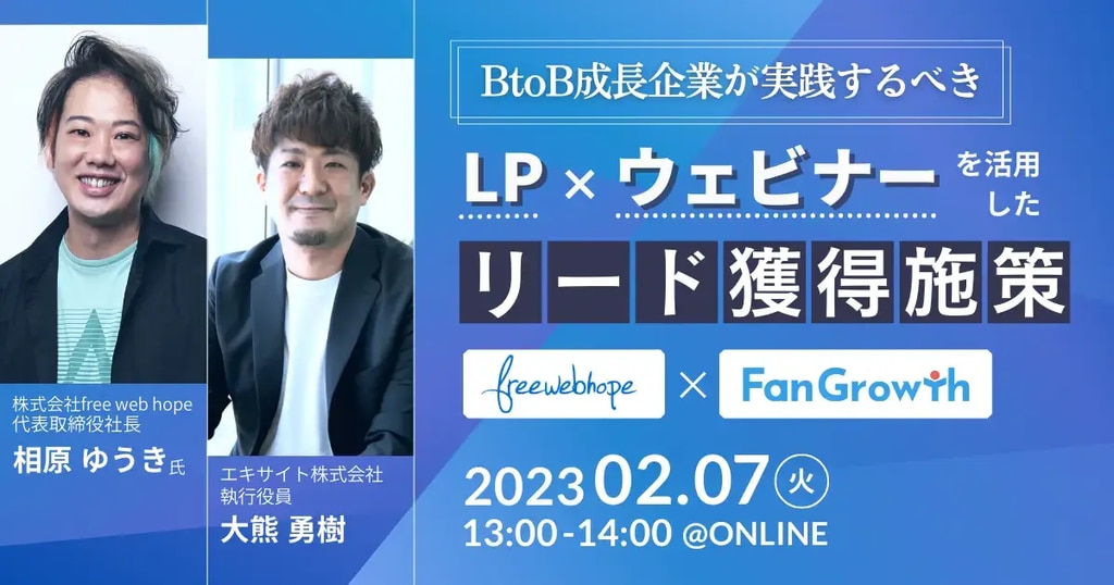 【BtoBマーケ担当者向け】「BtoB成長企業が実践するべきLP×ウェビナーを活用したリード獲得施策」をテーマに「FanGrowth」が2月7日(火)13:00〜ウェビナーを開催