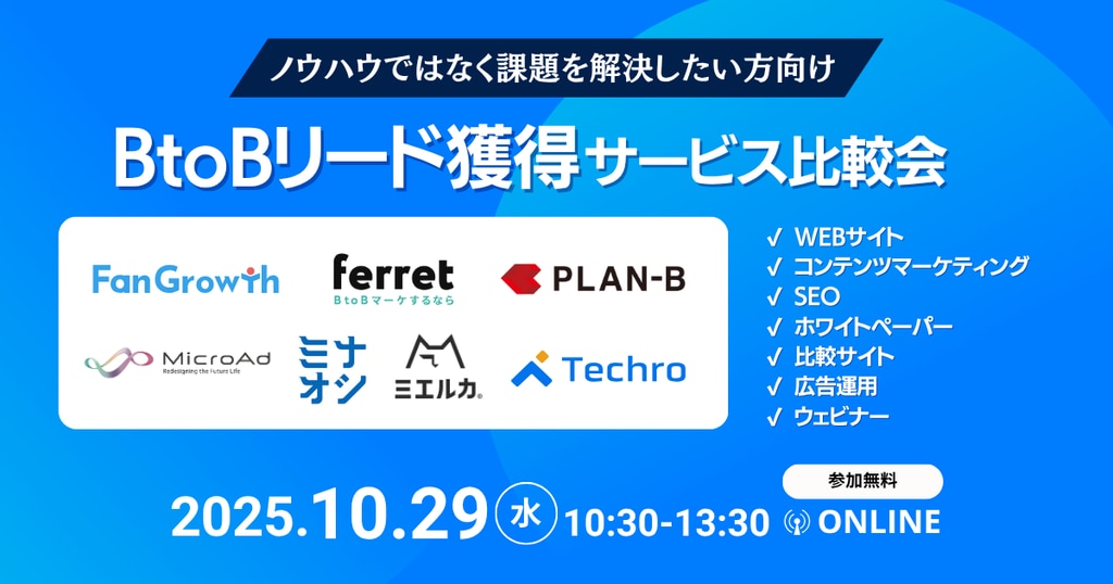 成功事例から施策活用シーンがわかる!7社のBtoBリード獲得サービス比較会