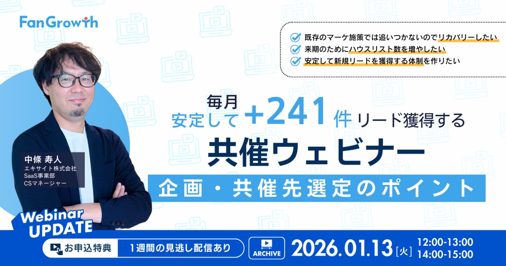 Webinar UPDATE! 毎月安定して+241件リード獲得する共催ウェビナー企画・共催先選定のポイント