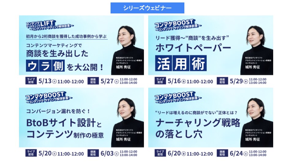 城所:今のウェビナーのところでいくと、シリーズ企画みたいなのはしっかり確立したいなと思います。やっぱり覚えてもらいやすいですし、そこからの商談の期待値も読めると、読みが作りやすくなります。