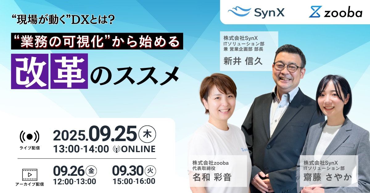 本ウェビナーでは、属人化・手作業に依存する業務の可視化から、改善アクションへとつなげる実践的なアプローチについて議論するとともに、業務プロセスの棚卸し、ボトルネックの特定、改善施策の落とし穴など、現場が動き出すためのリアルな知見をお届けします。