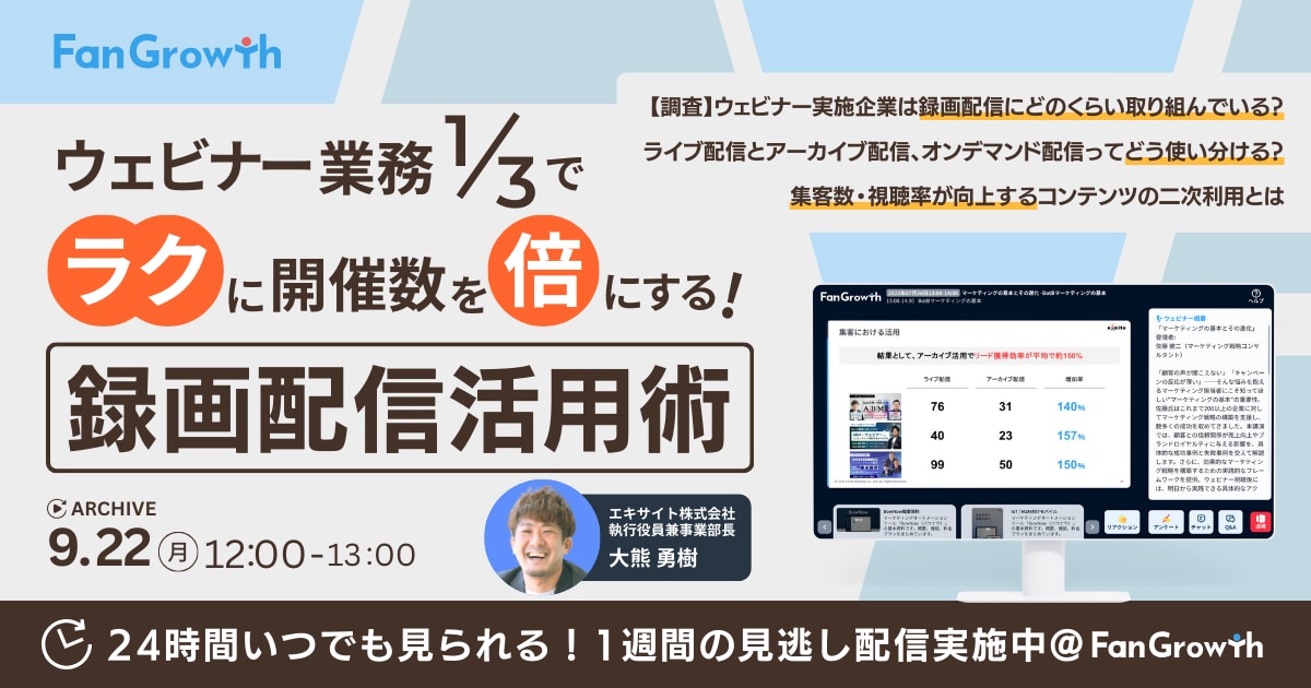 | タイトル | ウェビナー業務1/3でラクに開催数を倍にする!録画配信活用術 |